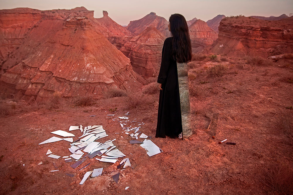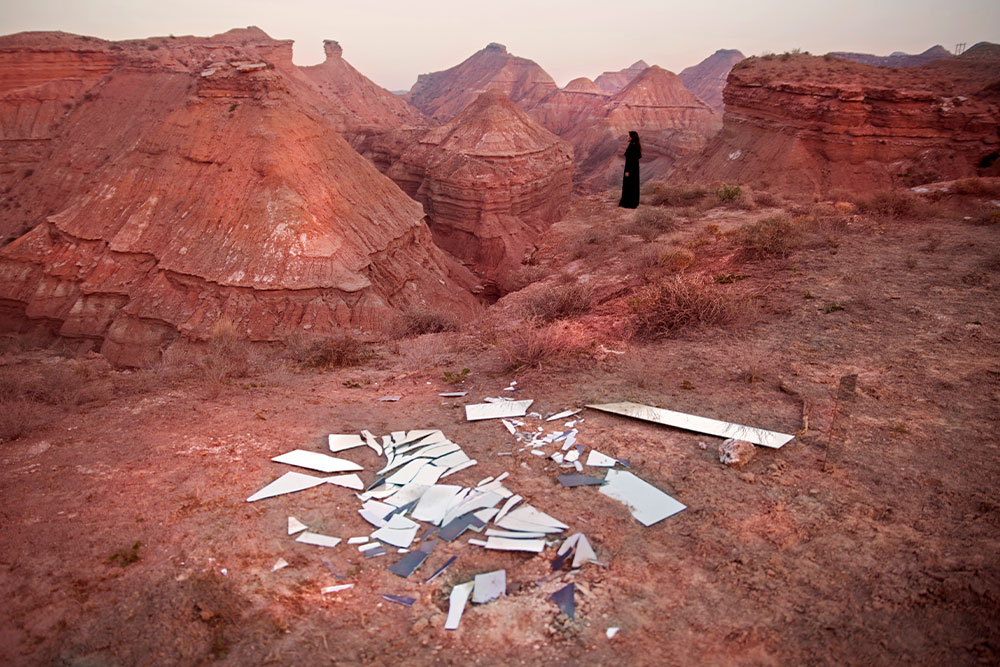 This photo performance is a deeply personal narrative, reflecting the struggles and resilience of women in the Middle East, particularly in Afghanistan. As the central subject of this series, I shatter mirrors—symbols of self-reflection and fragmentation—while continuing to engage with them. Through makeup, poses, and intimate moments with the broken shards, I explore the paradox of finding beauty and joy even amidst destruction and pain.
